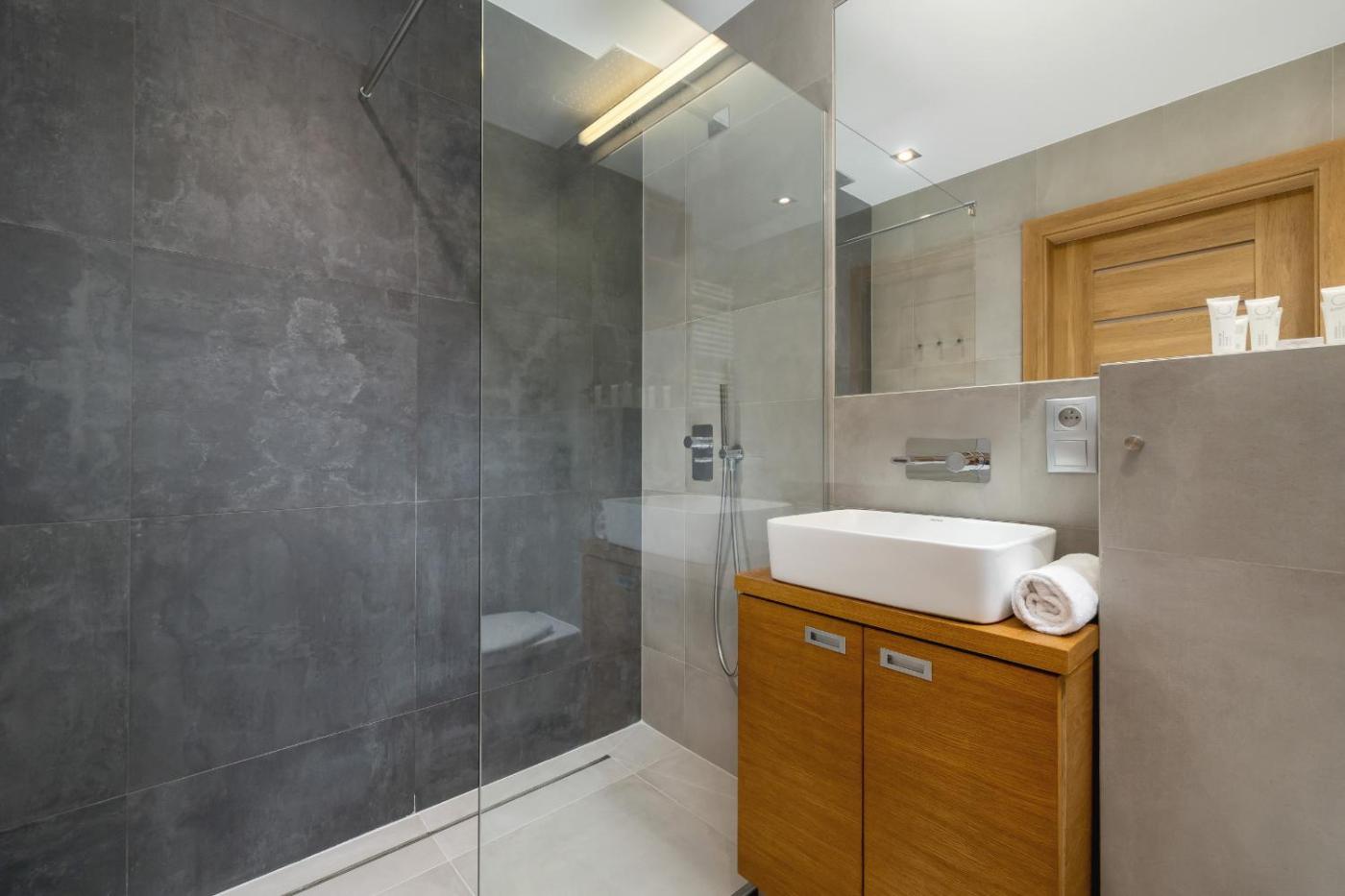 Apartament z 1 sypialnią. This apartment consists of 1 living room, 1 separate bedroom and 1 bathroom with a shower and free toiletries. The well-equipped kitchenette features a stovetop, a refrigerator, a dishwasher and kitchenware. Featuring a balcony, this apartment also provides a washing machine, a tea and coffee maker and a flat-screen TV with streaming services. The unit offers 2 beds. Apartament - 5 osobowy. Powierzchnia pokoju ok.: 45 mkw.