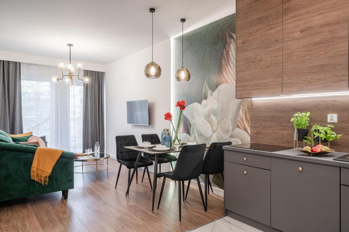Apartament typu studio. This apartment consists of 1 bedroom, a kitchenette and 1 bathroom with a shower and a hairdryer. Meals can be prepared in the well-fitted kitchenette, which is equipped with a stovetop, a refrigerator, a dishwasher and kitchenware. Featuring a balcony, this apartment also provides a washing machine, a tea and coffee maker and a flat-screen TV. The unit offers 1 bed. Apartament - 2 osobowy. Powierzchnia pokoju ok.: 30 mkw. ;