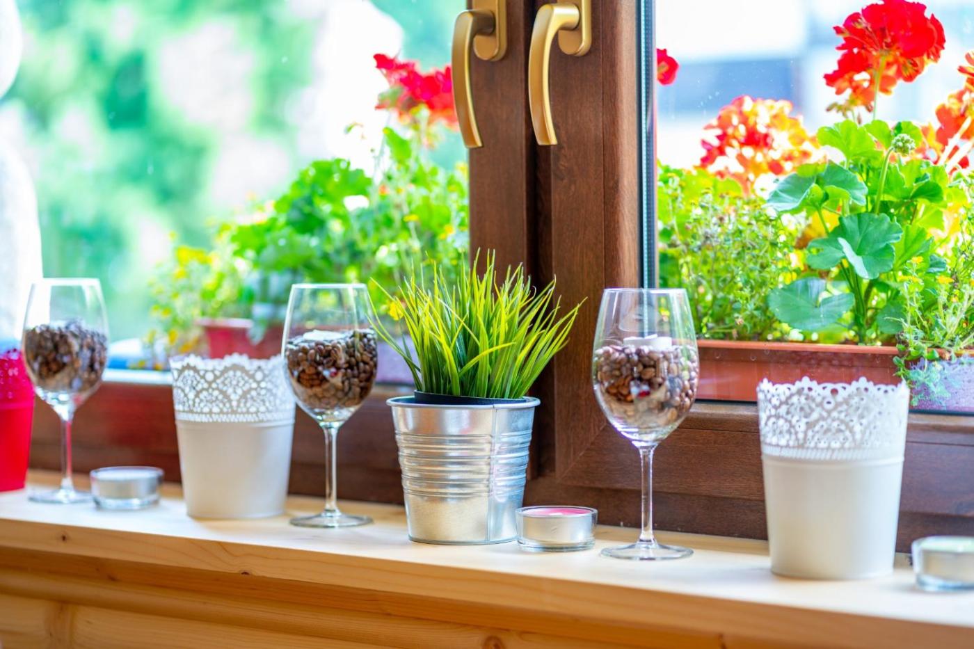 Pokój Czteroosobowy z łazienką. The quadruple room offers a wardrobe, parquet floors, a terrace with garden views as well as a private bathroom boasting a walk-in shower. The unit has 4 beds. Pokój Czteroosobowy - 5 osobowy. Powierzchnia pokoju ok.: 18 mkw. ;